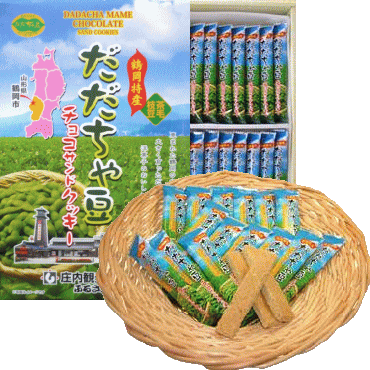 「だだちゃ豆チョコサンドクッキー」 ラインナップ 「14枚入」 「22枚入」庄内観光物産館トップ >> スイーツ・洋菓子 >> クッキー >> だだちゃ豆チョコサンドクッキー >> 14枚入 恵まれた鶴岡の大地で大きく育っただだちゃ豆と洋菓子の絶妙なハーモニー。